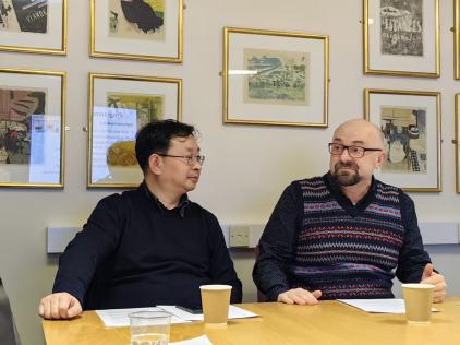 在杜伦大学,现代语言与文化学院院长Edward Welch教授与黄敏老师就AI冲击下的翻译教育进行了深入交流,分享了中西方高校的不同应对经验;Sergey Tuylenev教授就新时代的翻译理论与翻译研究为同学们提供了悉心的指导;黄金博士、司马麟先生为同学们举办“从本科到研究生:学术路径与选择”圆桌论坛,邀请杜伦大学翻译专业博士、硕士研究生与同学们面对面交流,从翻译实践与研究选题角度,帮助同学们做好学术和职业规划;考古系张然博士带领同学们参观东方博物馆,以中国文物译介为例,与同学们探讨中国文化国际传播的有效路径与方法;历史系Christ Courtney副教授以自己撰写《龙王之怒》为例,与同学们交流武汉历史研究与中国声音海外传播的经验。在利兹大学,中国译协海外专家Martin Ward教授,与同学们分享了自己翻译中国的经验和建议。在伦敦,国际组织资深译员马骋老师和张光波老师与同学们围坐畅谈,从国际组织翻译经历与趣闻轶事、同传中的译员配合和困境应对,到人工智能对翻译行业的冲击与挑战,再到译员如何保持行业不可替代的专业敏锐度等等,两位老师知无不言、言无不尽,为同学们解答了翻译专业学习与职业发展中的诸多困惑。