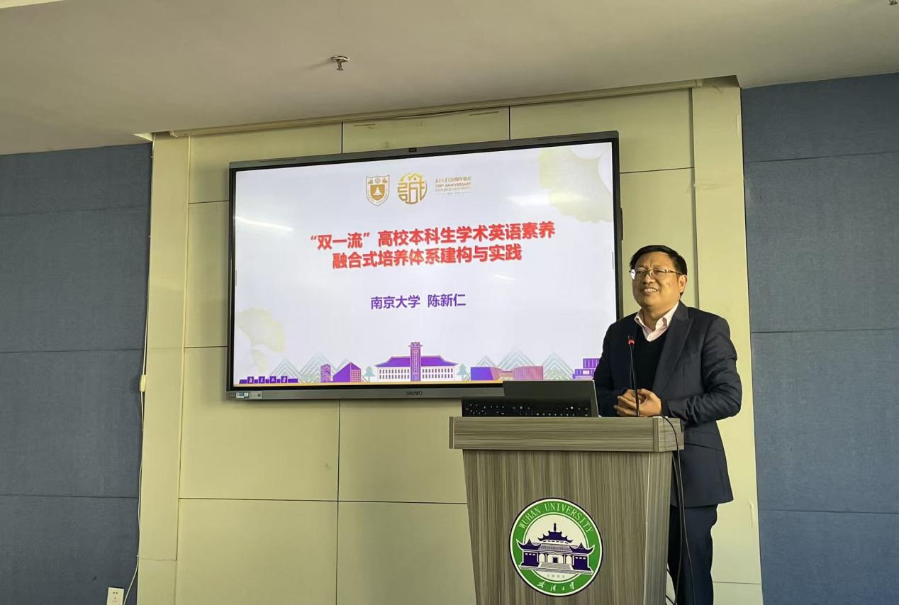 讲座中,陈教授还介绍了南京大学大学外语部在建构融合式教学体系方面的实践举措。他提出要确立学术英语教学目标体系和建构多元目标和融入育人目标;构建基础层次、提高层次和专业层次层层递进的学术英语课程体系;建设线上课程和资源;改进教学方法与手段;探索课程延展、讲座培训和竞赛实践相结合的学术英语实践体系;成立学术英语服务中心;打造学术英语教研团队;成立“中国高校国际学术交流英语教研联盟”等。陈教授还提出,教学改革的重点是将“育人”纳入课程教学目标、建设学术英语课程体系和推广线上线下混合式教学模式。